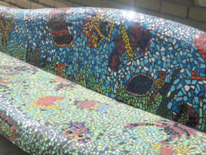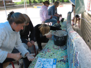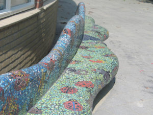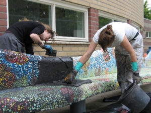 De wens van school was het om een mozaïkbank te maken voor op het schoolplein.