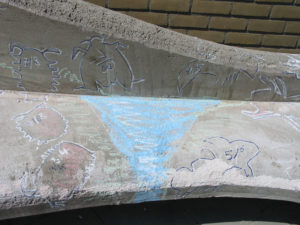 Alle leerlingen hebben meegeholpen bij het plakken van de mozaïksteentjes. Hiervoor werden velen mooi gekleurde tegels met hamers in een stuk stof stuk geslagen. De steentjes werden in een betonmolen getrommeld. Zodat de scherpe hoeken afgesleten werden. De twee kunstenaars Bérénice Staiger en Jacomijn Schellevis hebben het ontwerp met krijt op de betonnen bank getekend.
